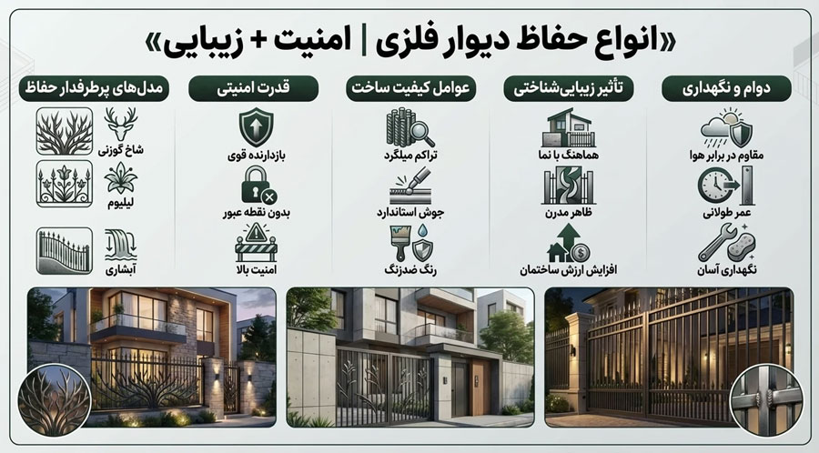 امنیت ساختمان در سال ۱۴۰۴ با انتخاب صحیح مدل حفاظ دیوار فلزی، به سطح جدیدی رسیده است. تنوع مدل‌هایی مانند شاخ گوزنی، لیلیوم، سرنیزه‌ای و آبشاری امکان انتخاب دقیق را برای هر سبک ساختمان فراهم ساخته است.